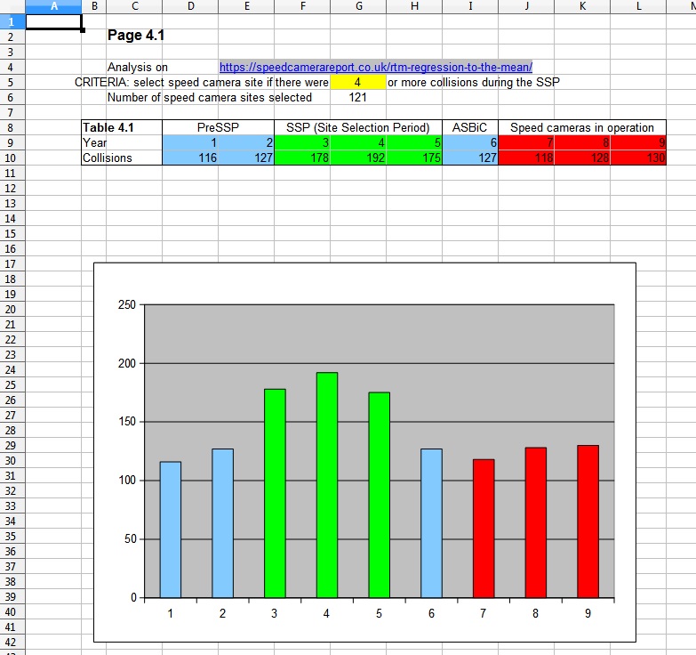 The SSP (Site Selection Period) is years 3, 4 and 5. If a road had 4 or more collisions during that time, it is called a “collision hot-spot” and designated a speed camera site.