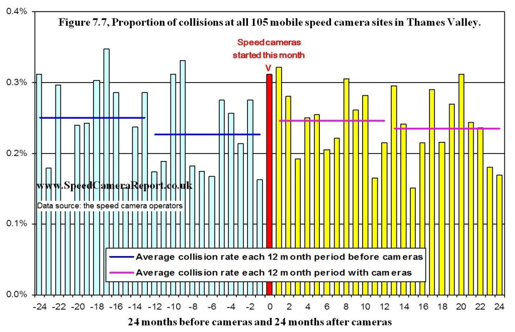 FOI (Freedom Of Information) requests were sent to all local authorites in Thames Valley, the Thames Valley Police and DfT (Department for Transport) but all stated they have no data on changes in speed at any mobile sites in Thames Valley. - The national safety camera programme Four-year evaluation report December 2005: UCL, PA Consulting, Adrian Gains, Michael Nordstrom, Benjamin Heydecker, John Shrewsbury, Linda Mountain, Mike Maher. 4-year evaluation.