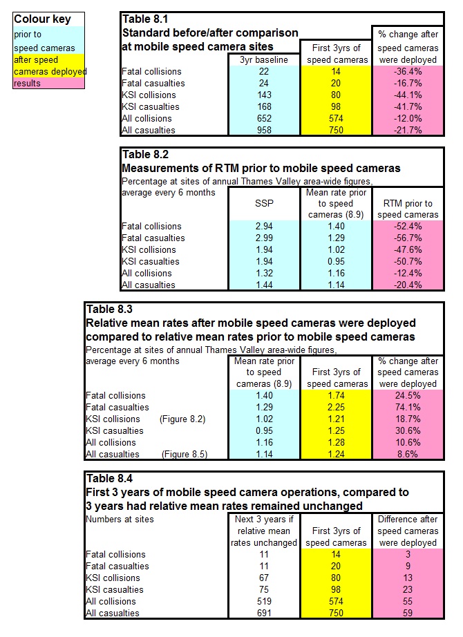 As these final results are the changes that occurred at mobile speed camera sites having excluded RTM effects and having compensated for the effects of general influences (such as rising traffic volumes and safer vehicle design), they should be about as accurate an evaluation of the effects of mobile speed cameras as is possible given the data available.