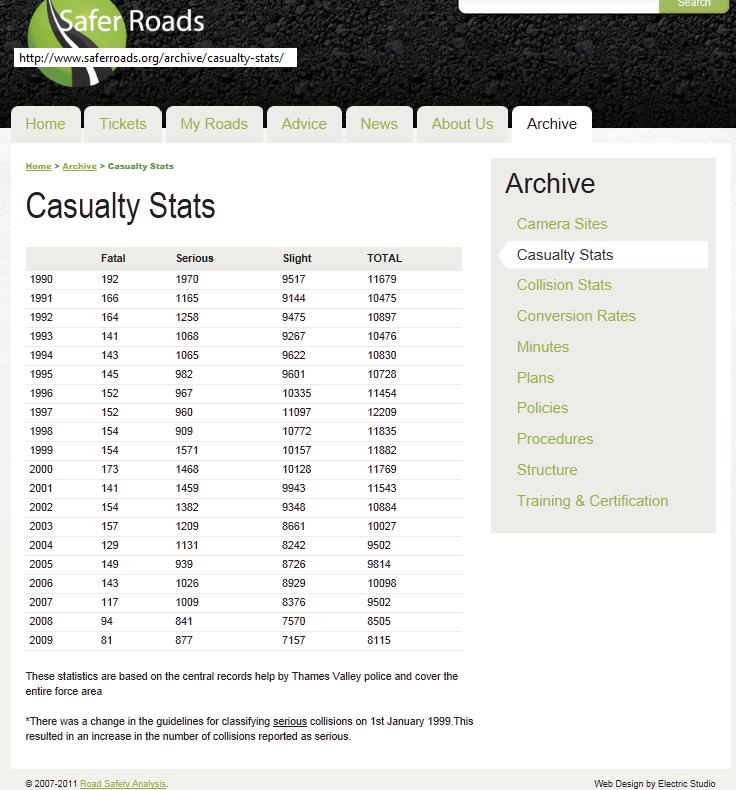 6: At the end of this page on the TVSRP website, “There was a change in the guidelines for classifying serious collisions on 1st January 1999. This resulted in an increase in the number of collisions reported as serious”.