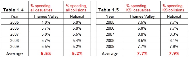 If Police were not able to do this, we might expect to see large variations in the frequency of “exceeding speed limit” in different Police force areas or large variations year after year, but this is not the case. All reports seem to show remarkable consistency both over many years and in different areas (see contributory factors tables, pages “Country” and “English Regions”). For instance in Thames Valley (report), the percentages of collisions that involved speeding were very similar to the national average: